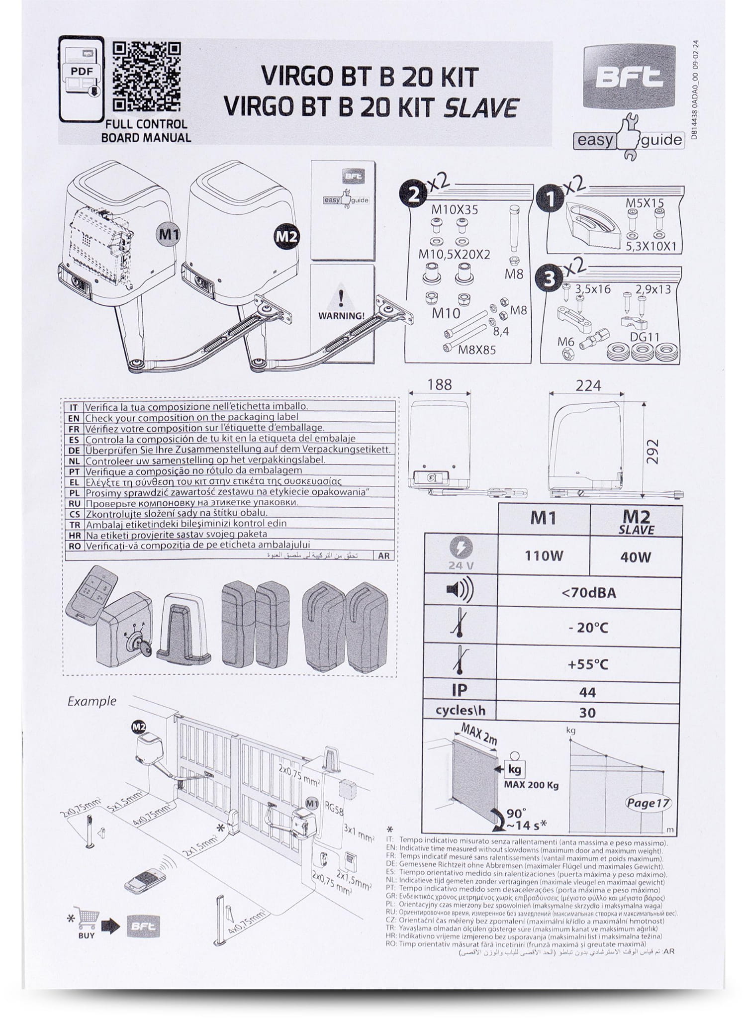 Zestaw BFT VIRGO SMART BT B20 KIT do bram dwuskrzydłowych