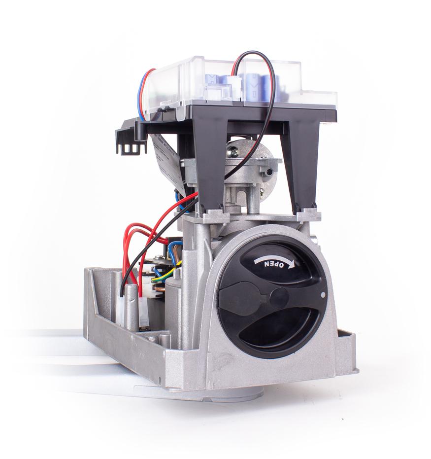 - Dzięki samoblokującemu napędowi nie ma potrzeby instalowania zamków elektromagnetycznych. W przypadku awarii zasilania łatwy w obsłudze system zwalniający (z indywidualnym kluczem) pozwala na otwarcie lub/i zamknięcie bramy.