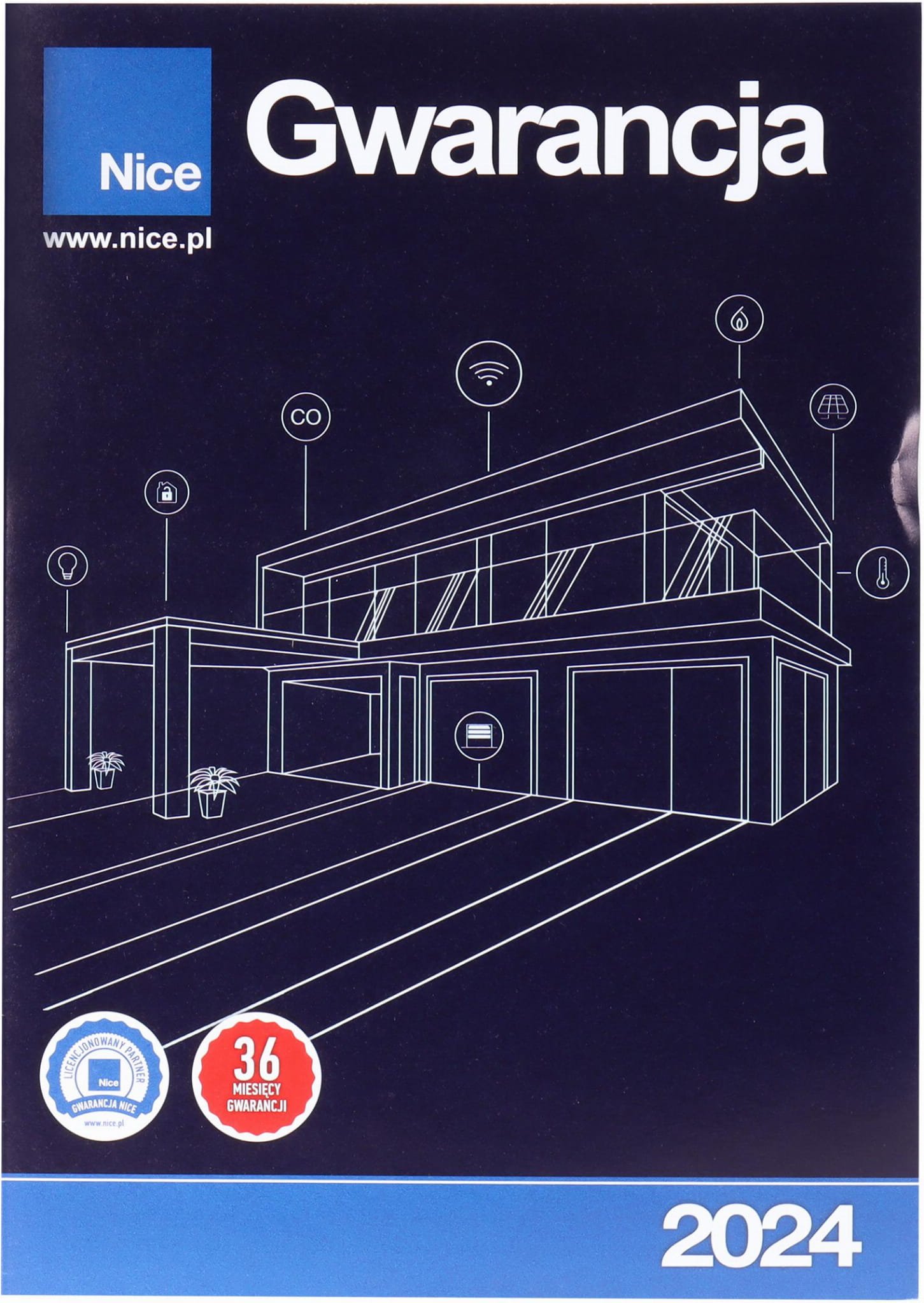 - Uwagi do gwarancji: Samodzielna instalacja produktu Nice = rezygnacja z gwarancji. Aby obowiązywała gwarancja na 3 lata, montaż musi wykonać certyfikowany instalator Nice, który dokona przeglądu między 10, a 12 miesiącem od montażu. Brak przeglądu = rok gwarancji producenta.